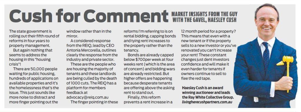 A considered response from the REIQ, lead by CEO Antonia Mercorella, outlines clearly the response from the industry and private sector. These are the people who are housing the majority of tenants and these landlords are being culled by the death of 1000 cuts. The REIQ has a platform for members feedback at advocacy@reiq.com.au.